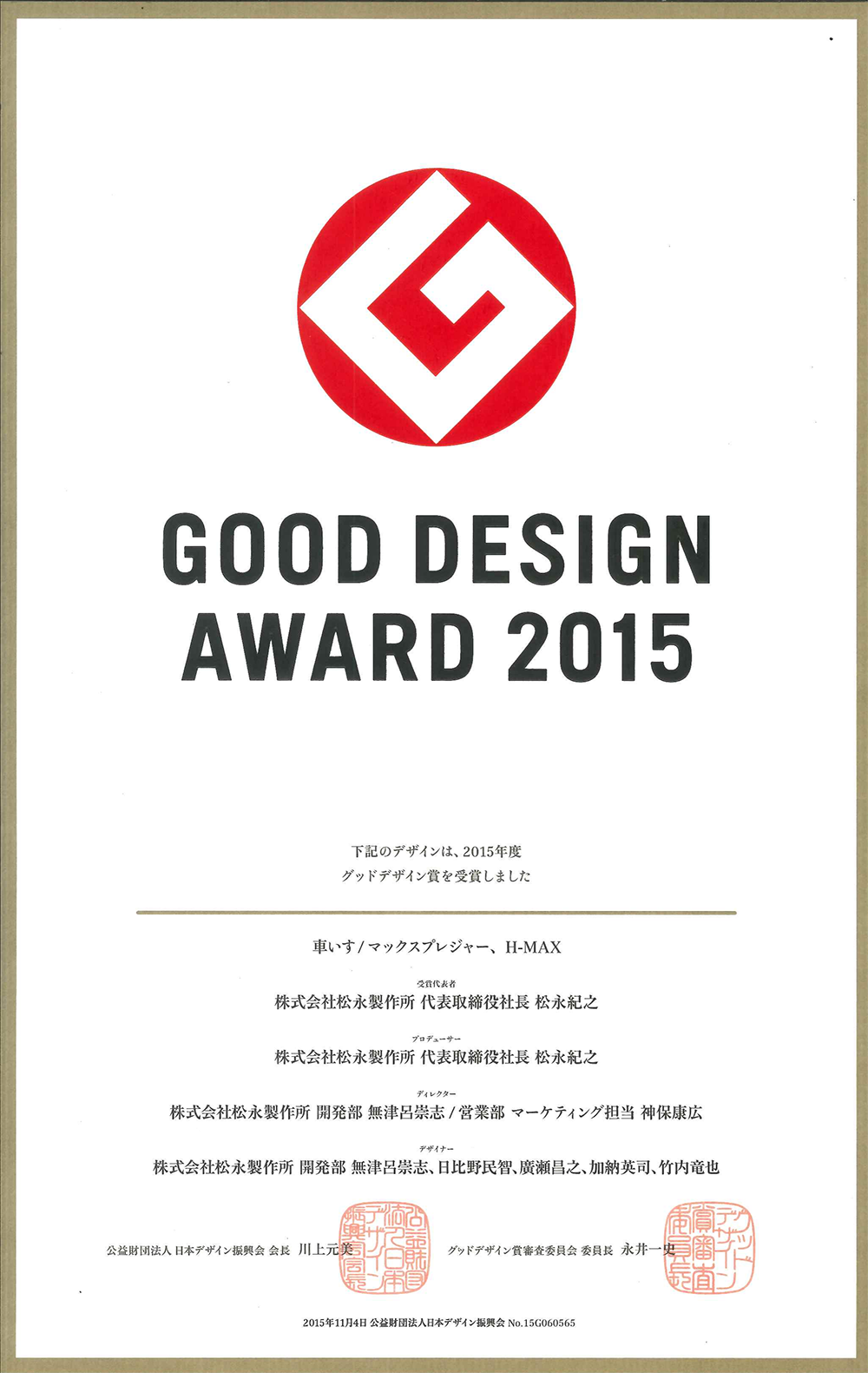 「H-MAX」獲得2015年度Good Design 產(chǎn)品設(shè)計大獎