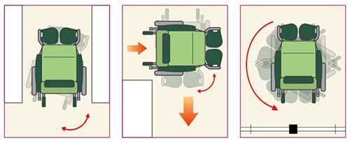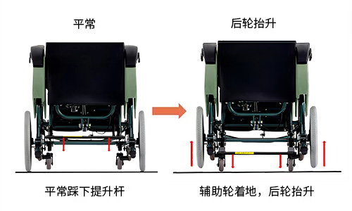 使用后輪抬升功能,輪椅可橫向移動(dòng)